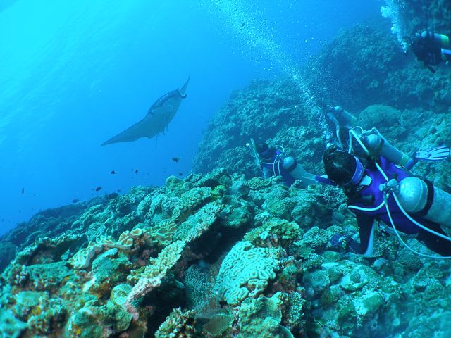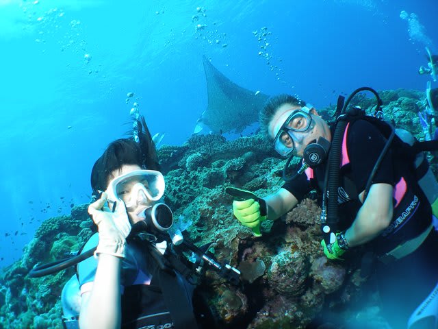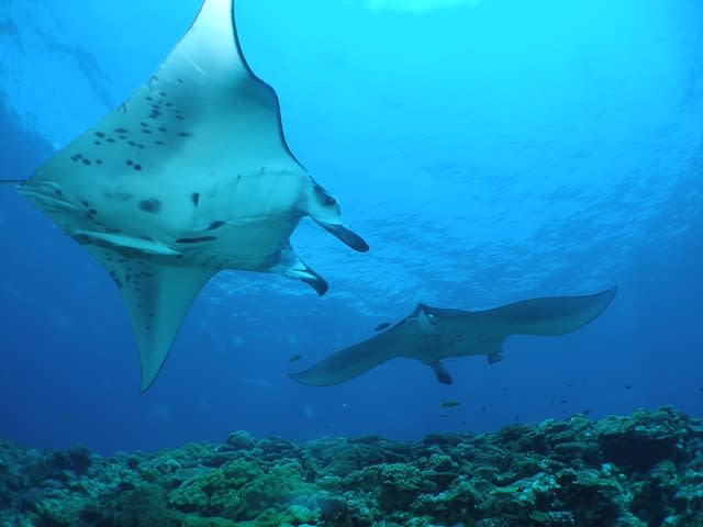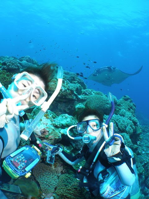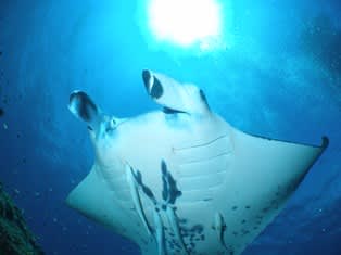 昨日マンタがいなかったのがウソみたいにアッチコッチでマンタが泳いでます