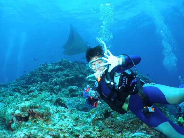 エントリーしてメインの根に移動中に1匹のマンタに遭遇!!