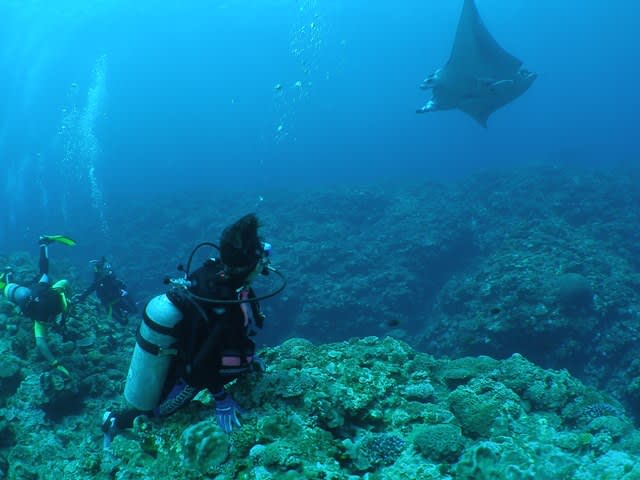 ホバリング♪そこにオスの小さいマンタが加わり2枚になりました!!