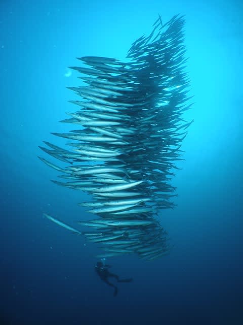 アリサ号のうしろで1匹1匹がとっても大きなカマスの群れに遭遇しました。