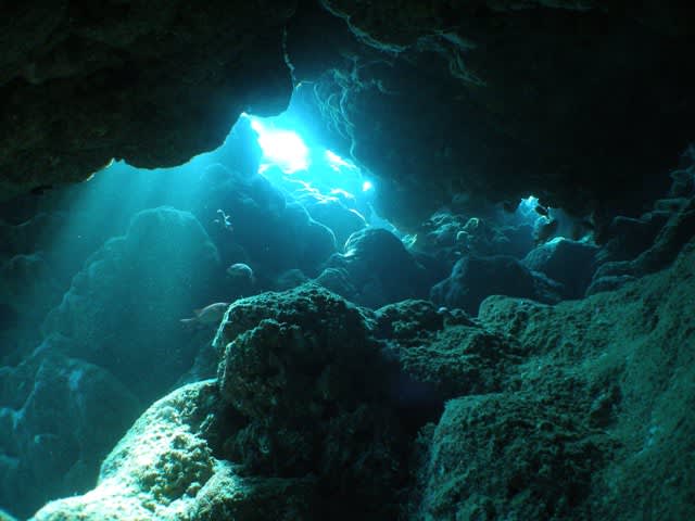 いつ見てもケーブなどの中から見る外の景色は海が綺麗な青色をしていて