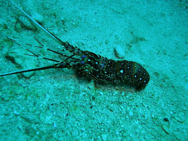 いきなりおいしそーなイセエビ発見!!カラフル、カラフル。のどから手は絶対