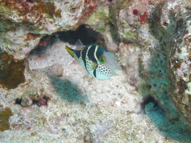 横長ケーブに入ると目が大きくギラリ☆アカマツカサ、頭の上には