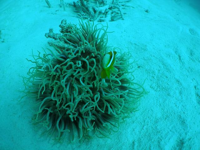 途中、ソフトコーラルの森を抜けて広場に出ればハゼやクマノミなど見て