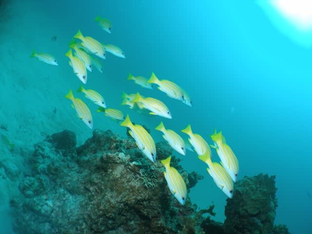 ジャガイモでは、グルクンの稚魚やデバスズメダイの群れがとっても