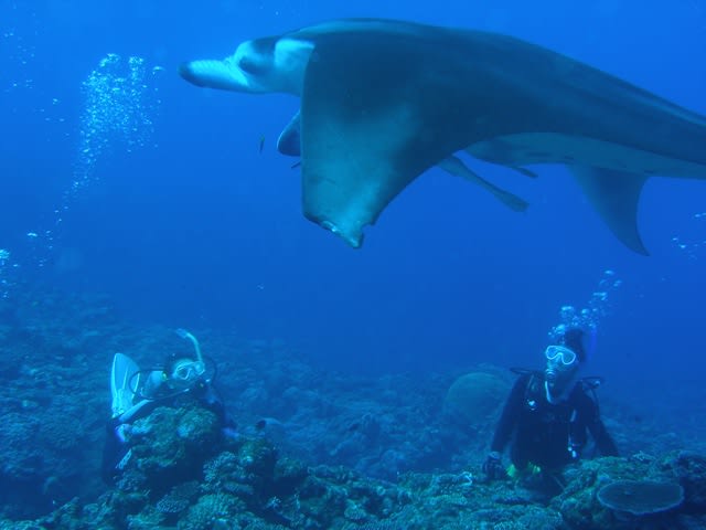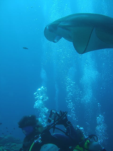 この二枚のマンタ郎とってもサービスが良くて、ゲストの頭の上を