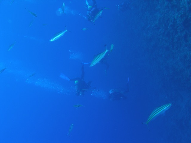 アカククリのクリーニングシーンを見たり、ホソカマスの群れ&アジ