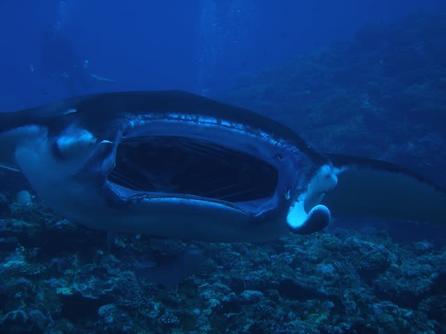 スクランブル以外のところで、真後ろにこんなに大きな口を開けたマンタ郎が