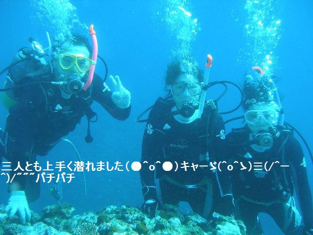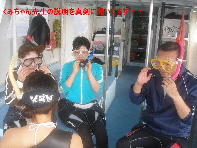 本日は、体験ダイビングにチャレンジしに福井県からお越しのオオウチさん、オガタ親子さんの三名で貸切アリサⅣで出港です\(^o^)/今日は、午後から波の高さ4㍍!!!!体験ダイビングは少し辛いかな???って思ってましたけど、午前中はそんなに吹いてませんでしたの宮良まで移動して、体験を楽しんでもらいました(*^_^*)