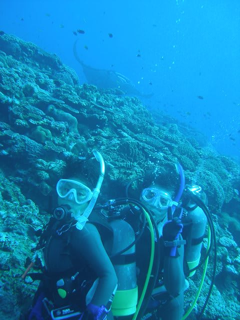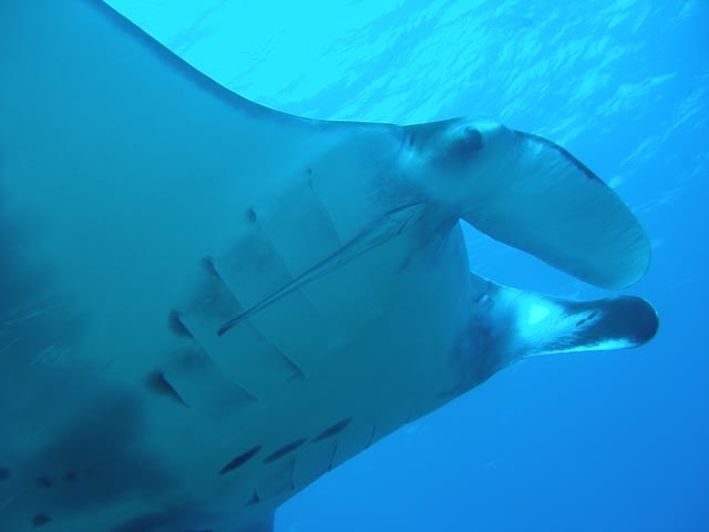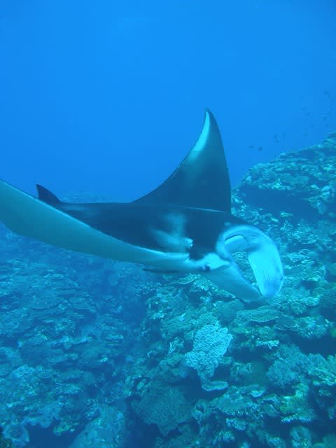 子マンタがホバリングしていると、もう一枚マンタ郎が登場ですヽ(^o^)丿