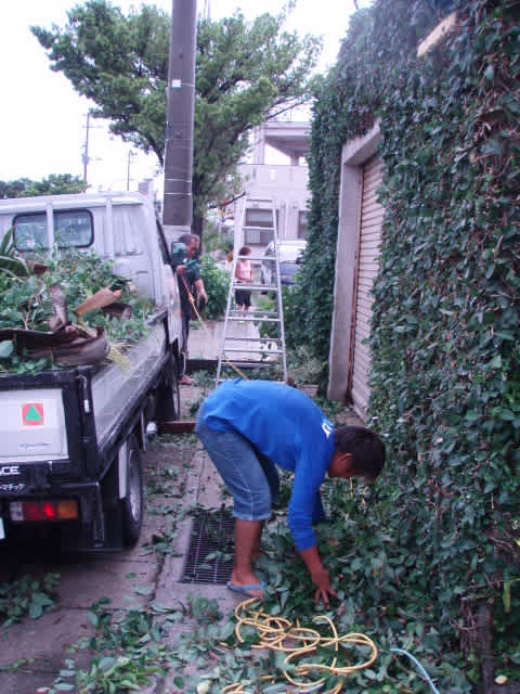 頑張って掃除しましたけど、台風の風はそんなに強く