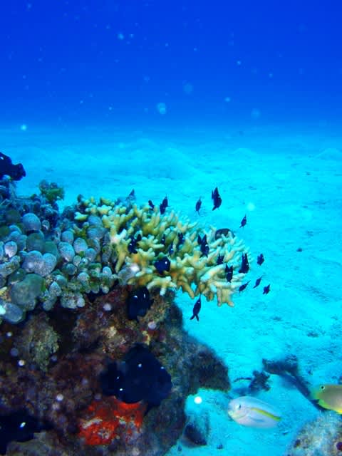 ここは、ナンヨウキサンゴにスカシテンジクダイが群れてて