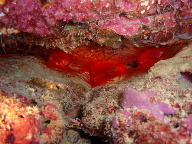 チョコチョコ出てきてくれて、なんと!大きなイセエビの背中に