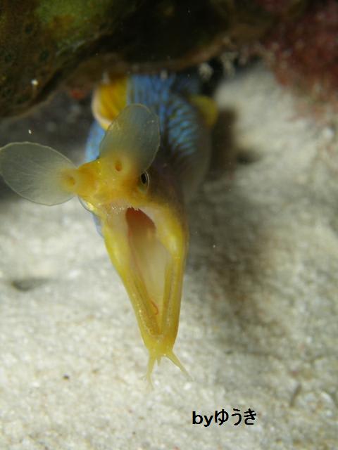 青くてとっても綺麗なハナヒゲウツボが居たのは良いのですが