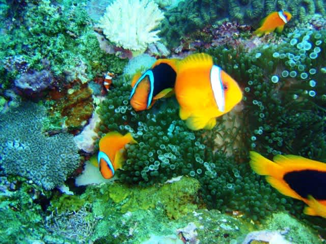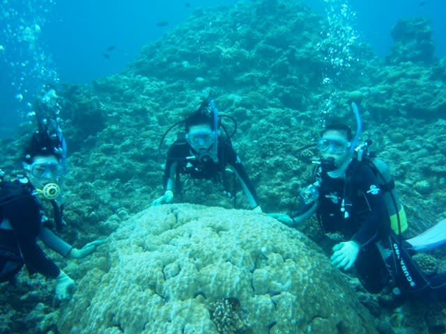 なんといっても水深が浅くて、大きなテーブルサンゴの周りには