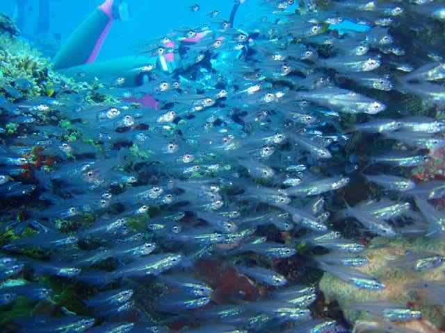 アンカーをかけに行ったトッキーがバラクーダーの群れを確認