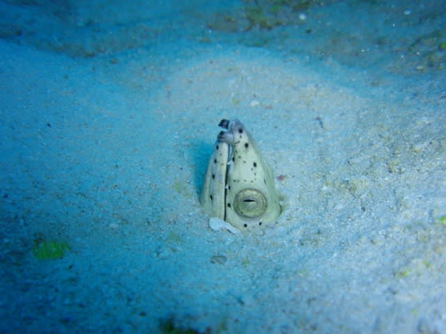 1本目は、砂地ポイント♪今日もいつもの定位置にいました~~ハダカハオコゼ!