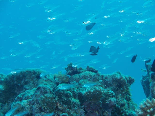 が登場です♪だけど、ダイバーに気が付きアカククリの群れのなかに