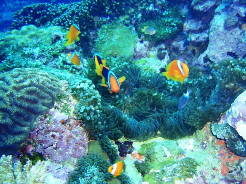 うわ~~~今日もスコーンとよく見えますよ☆彡透明度のいいところは、ふわふわ泳ぐだけで気持ちいいですね~~♪私たちのまわりでは、カスミチョウチョウウオやグルクンの群れがワサ~~ワサ~~と泳いで、その先には!!!!!!