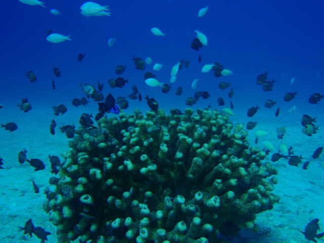 グルクンが大漁に泳いでる中にチビイソマグロの群れが突っ込んできてて、グルクンがパって散る瞬間は迫力あっていいですねーヽ(*’0’*)ツ
