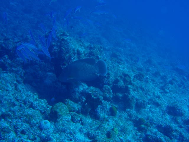 遠くの方でバラフエダイが群れてたので、近づいていくと、岩の影にでっかいナポレオン発見w( ▼o▼ )w オオォォ!!