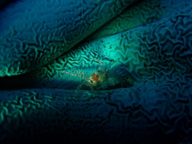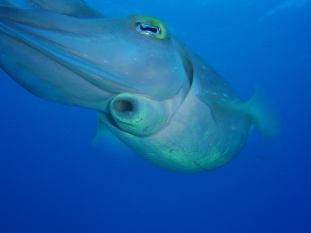 ボートに戻る途中には、メスのコブシメが3匹産卵する場所を