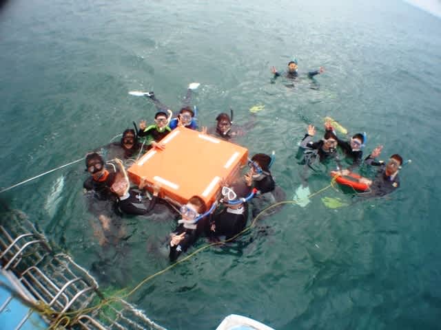 体験チームは、シュノーケルで水に慣れてもらった後、