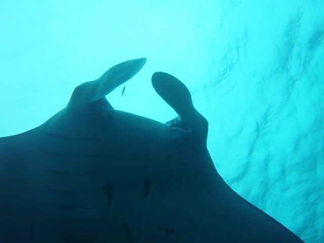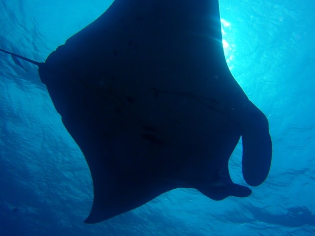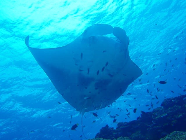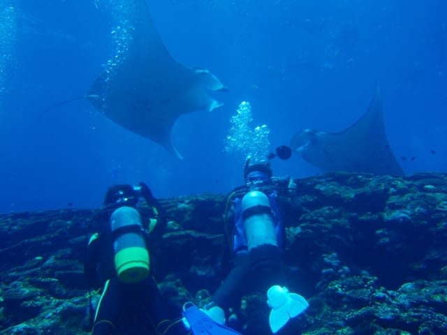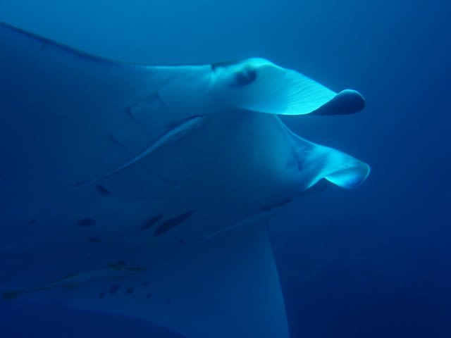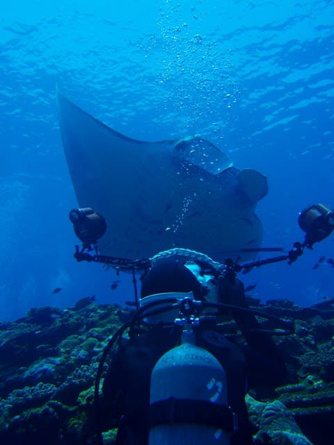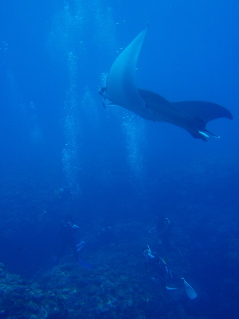 なんと捕食に夢中のマンタが、三枚向かってきたんです。