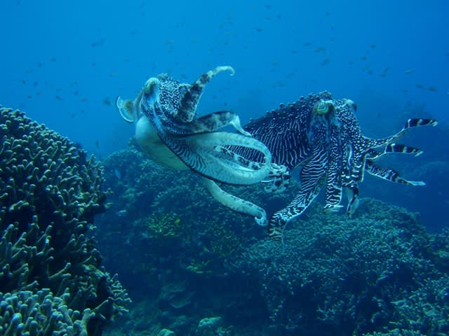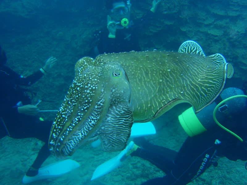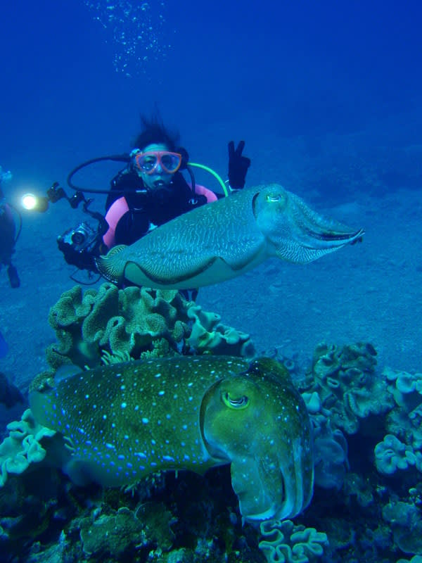 講習班のカサイ夫妻はしっかりスキルの練習をした後、せっかくなのでコブシメウオッチングヾ(´ー`)
