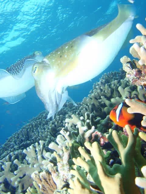 気が付くと下ではマダラトビエイ2枚が、グルグル!!
