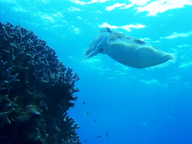 ハナゴイリーフでは、コブシメが私達の視線を気にもせず