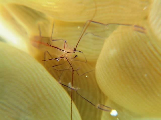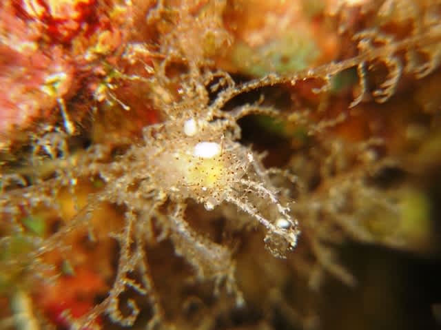 ちっちゃ過ぎてゴミみたいなタコの赤ちゃんやら、海草になりすましてるナナフシ(?)みたいなのや今日はマクロワールドとなりました。