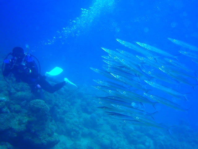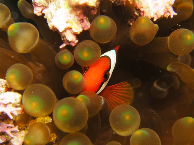 1本目は、秘密のクマノミさんやウミウシやカマスの群れなどを