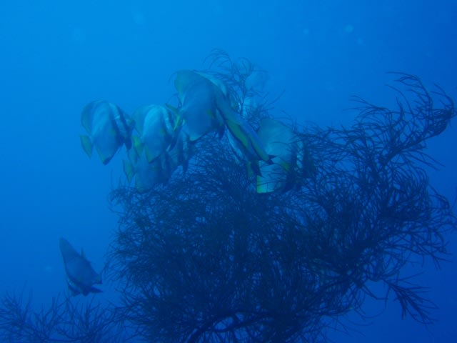 アカククリの根ではサプライズでヤッコエイが私たちの横を通っていきました!!少し急ぎ気味だったのでしょうか!?スーィと行ってしまいましたが写真はばっちりです!(^^)!
