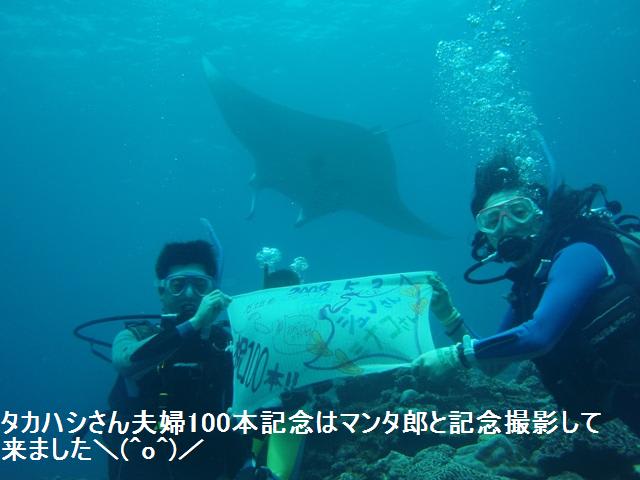 水中にはマンタ郎待ちのダイバーが100人くらいで