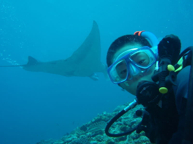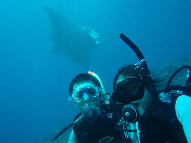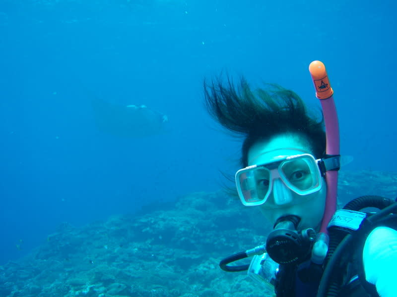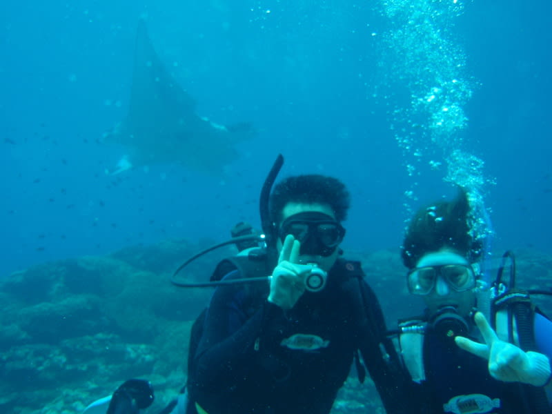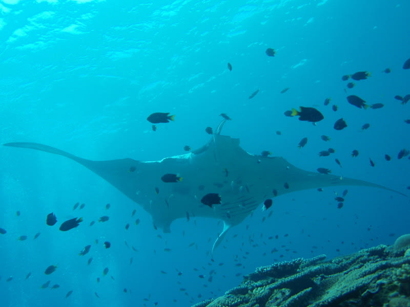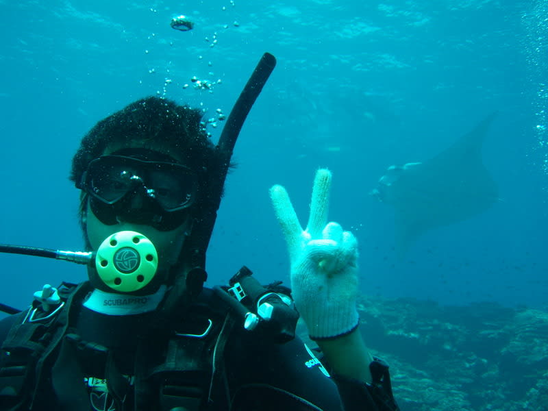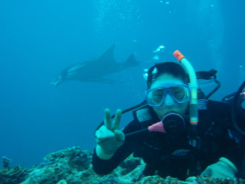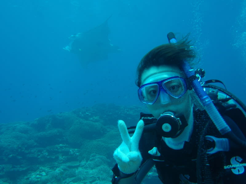 3枚と、数はそれほど多かったわけではないのですが、右からマンタ、左からマンタ、正面からマンタ、後ろからマンタとどっちを見ていいのかわからなくなるくらい、あっちからこっちから現れては、泳ぎすぎていきました(^^♪