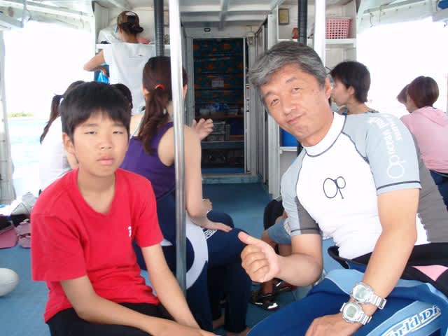 マンタ朗チームは、1~2本目は穏やかな大崎で潜って、ラストにマンタ朗に