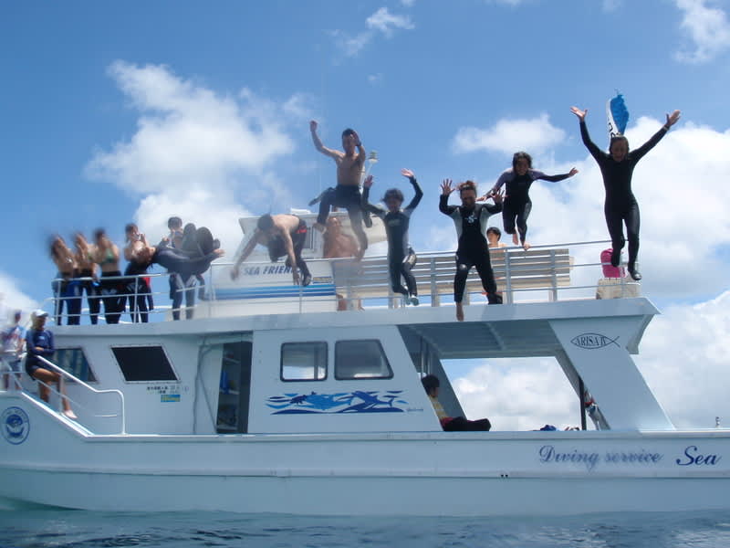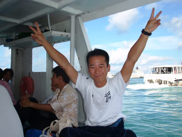 子供に戻ったかのように船の二階部分から、次々と大ジャンプを披露してくれました\(◎o◎)/!
