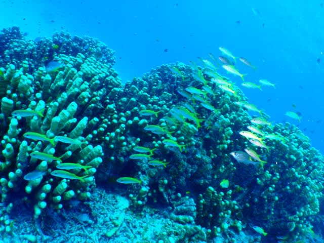 スノーケルで上から一面のサンゴや、魚を見て、いっぱい泳ぎました!(^^)!