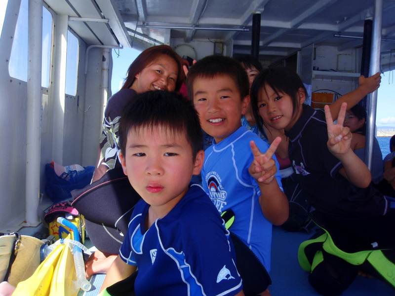 今日の体験チームは、体験ダイビング5名様とチビッコスノーケラーを含む、スノーケル6名様の計11名様(^^♪