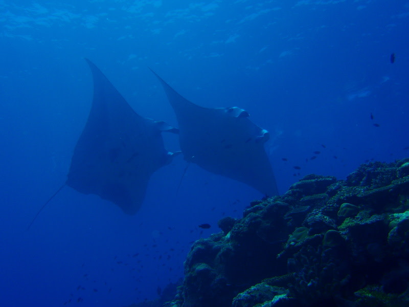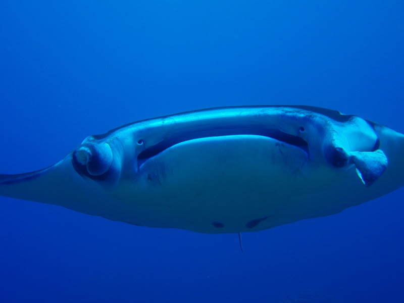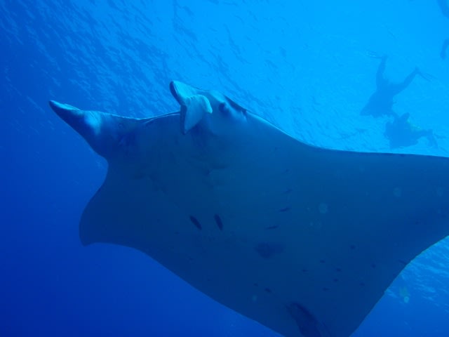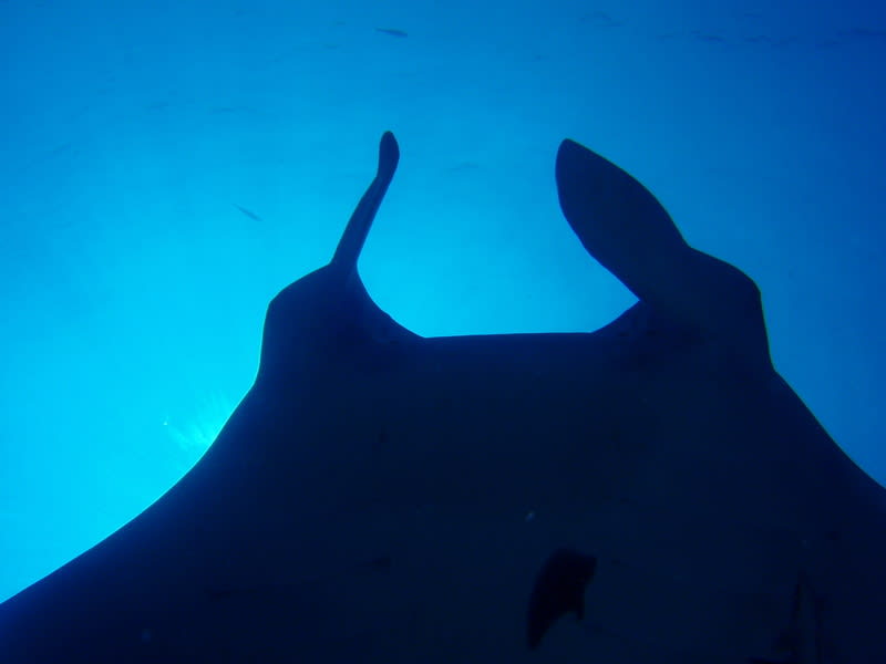 海に入ってすぐに一枚のマンタが、船の下を通って行き、今日も安心しつつ全員そろって泳いでいくと、なんと3枚ものマンタがその姿をダイバーに見せつけていました(*^_^*)