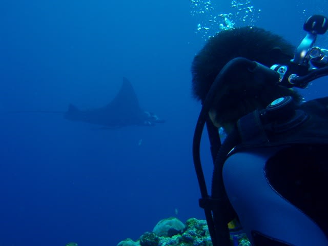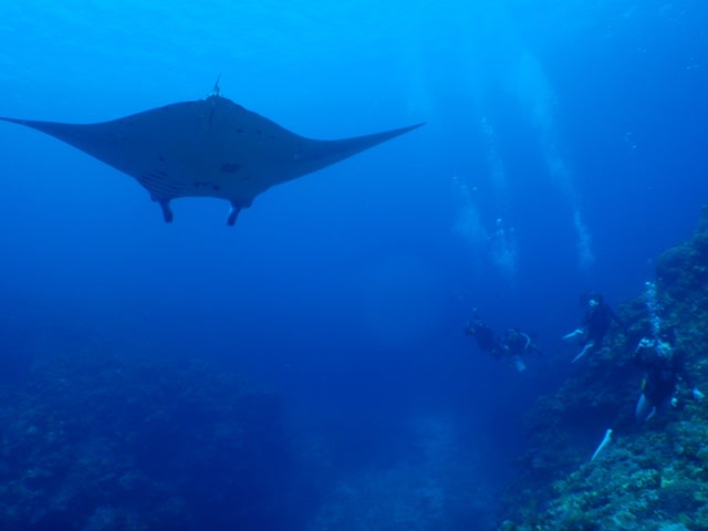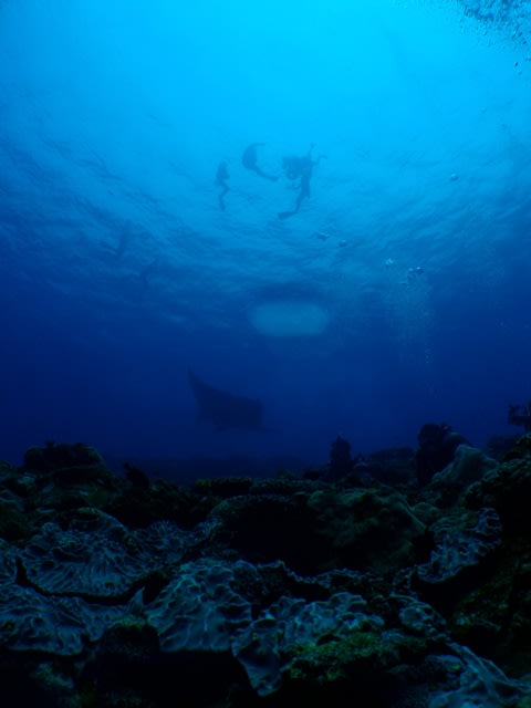 私たちが、着定しているところへマンタが飛んできます!!!!
