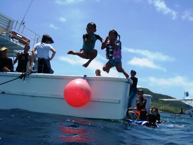 今日も船の上は、小さな飛び込み選手でいっぱい!!!