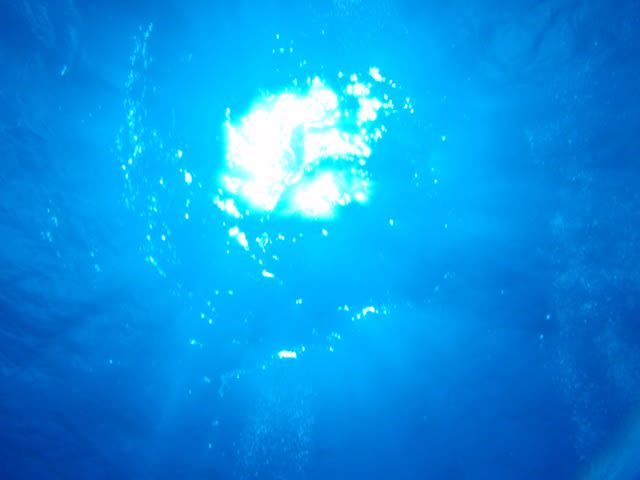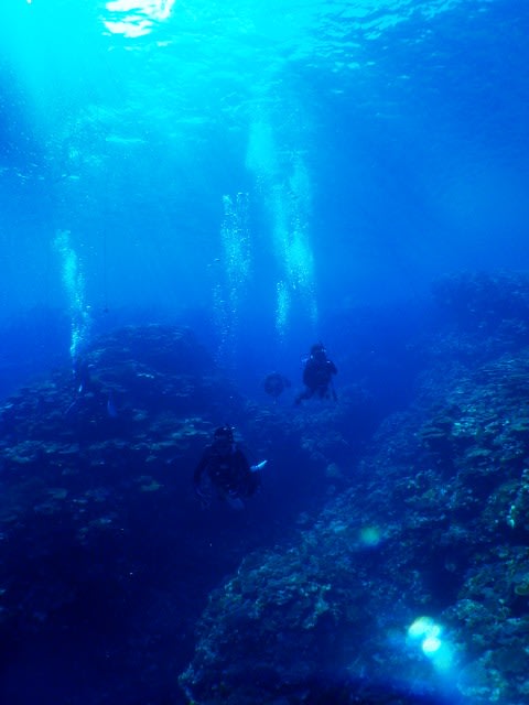 多少の波と流れのなか、今日の体験チームとチビッコスノーケラーは、根の上まで一生懸命に泳いだのに、下に見えるのはわずかな数のダイバーのみ(-_-;)