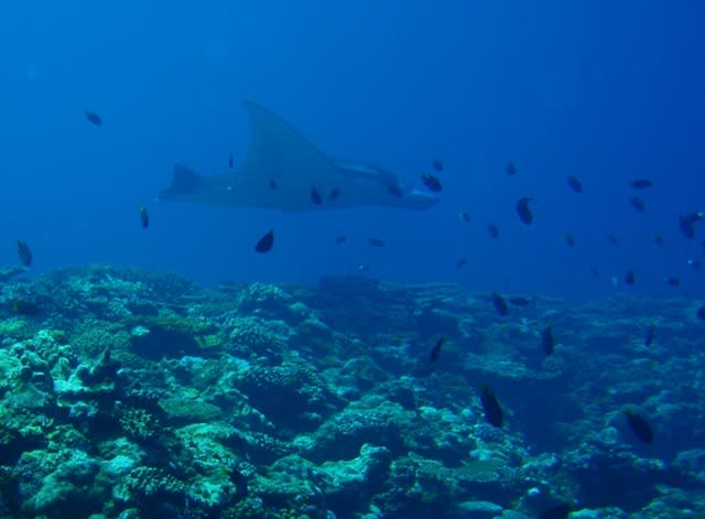 船の下に戻ってこようとしたときに、なんとか通り過ぎていくマンタをギリギリで見る事ができ一安心(*^_^*)