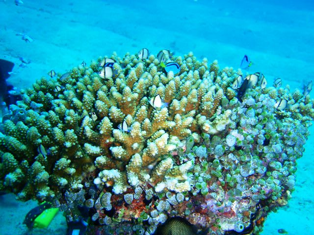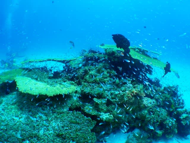 耳抜きに苦戦しながらも、潜っていくと、今日も沢山のサンゴや魚がお出迎えしてくれました(^_^)