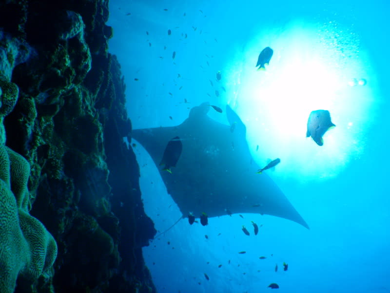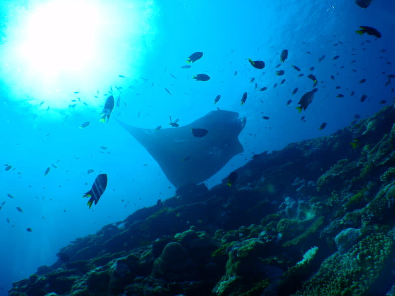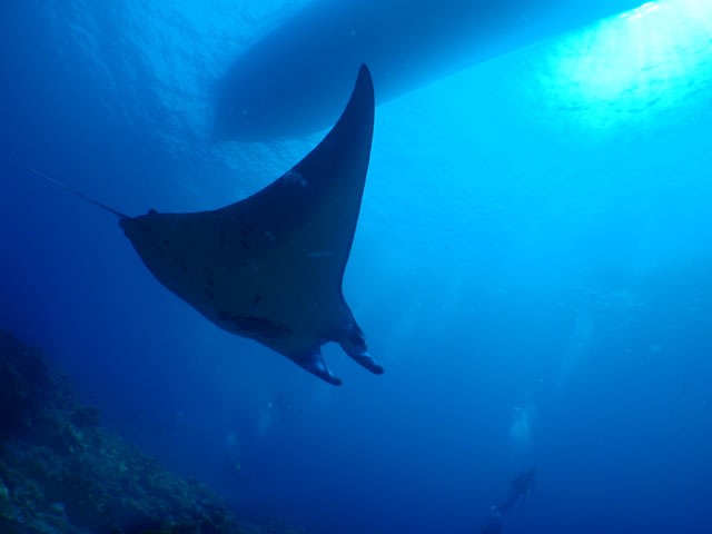 するとボートの下でお出迎えマンタ朗???すぐに去って行きましたけどね