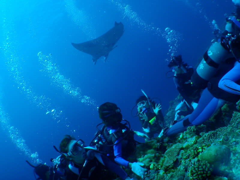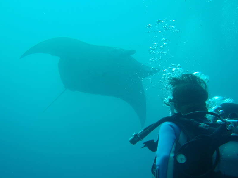 振り向いてみると、巨大なマンタがすぐそこにせまっていました(*^_^*)