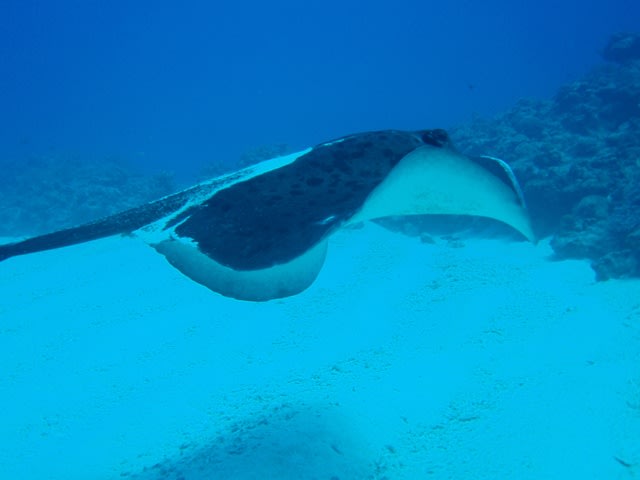 いざマンタを探しに泳ぎだすと、一枚のマンタが僕らの下を泳いで行きました(^^♪