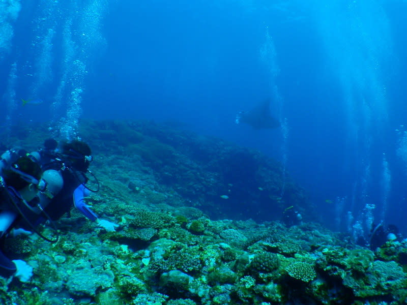 3度4度と、近くを通って行くマンタの姿を見ることは出来ましたが、残念ながら根の上を泳いでくれることはありませんでした(>_<)